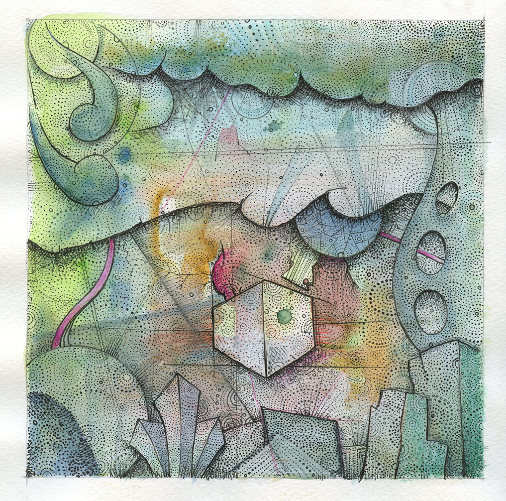 Drawing Painting SQ2024-002, 2023, ink and colored pencil on mat board, 5.1875 x 6.5 inches 9 (overall 7 x 8 inches)